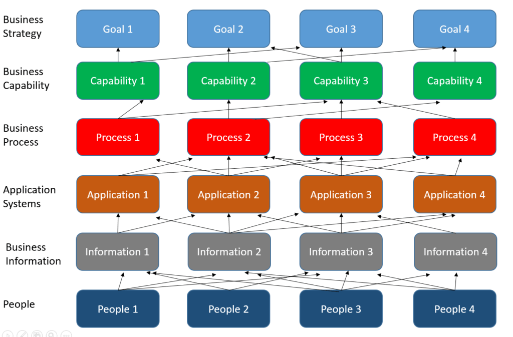 Business Architects support enterprises with identifying the current state of their business, discussing the future state of their business, and addressing all dimensions of the enterprise challenges. Business Architects create a common language throughout the whole enterprise through Business Architecture assets which creates a common language for all the different business units to prioritize their business needs with IT’s delivery plan. This, in turn, aligns the organization by creating a direct and clear linkage between executive intent and organizational action.